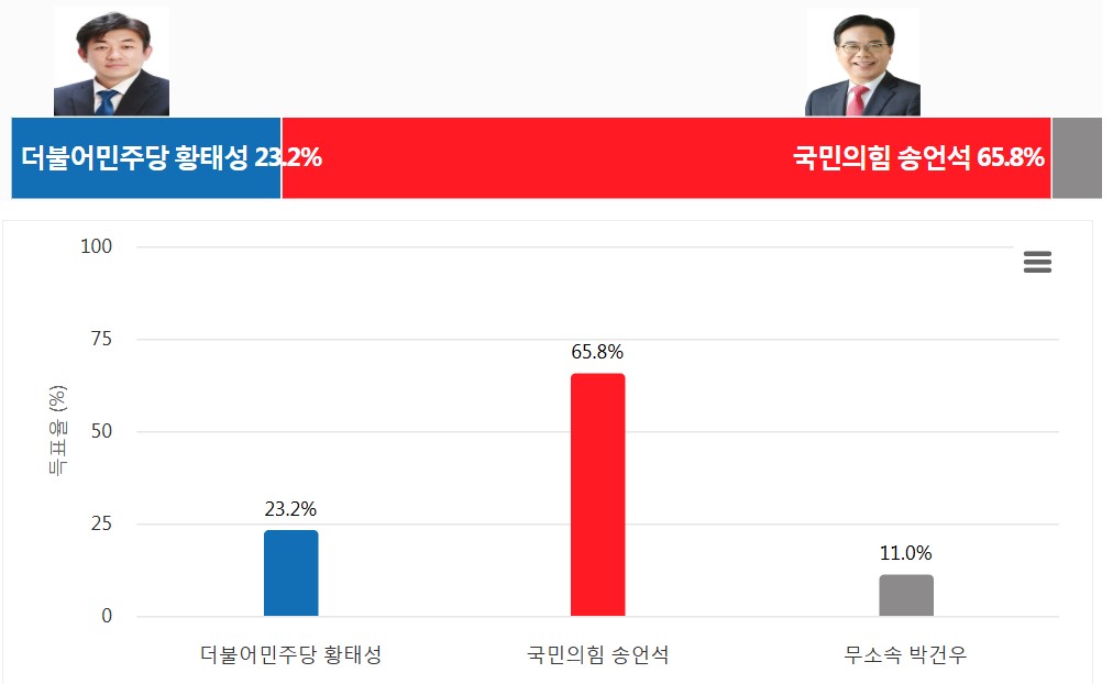 [2022 Áö¹æ¼±°Å ƯÁý] ±èõ½ÃÀå Èĺ¸ÁöÁöµµ¡¥±¹¹ÎÀÇÈû ±èÃæ¼· 61.6% > ¹«¼Ò¼Ó À̼±¸í 11.0%
