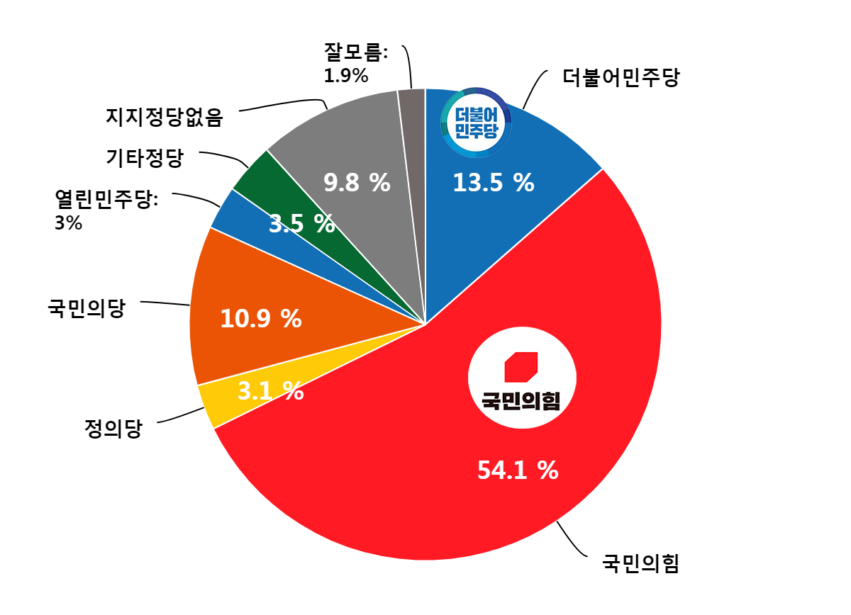 °æÁֽà Á¤´çÁöÁöµµ ¡¸±¹¹ÎÀÇÈû¡¹54.1%,¡¸´õºÒ¾î¹ÎÁִ硹13.5%,¡¸±¹¹ÎÀǴ硹10.9%