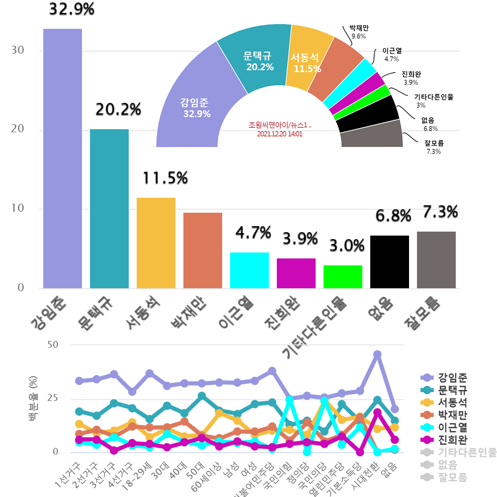 ¤ýÂ÷±â ±º»ê½ÃÀå Èĺ¸ ÁöÁöµµ ¡¸°ÀÓÁØ¡¹32.9%,¡¸¹®Åñԡ¹20.2%,¡¸¼µ¿¼®¡¹11.5%