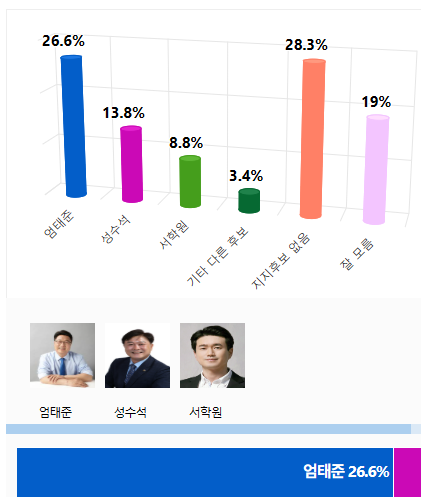 ¢Â¿ÀÂ÷¹üÀ§ ¹Û ¿ì¼¼ ¢¹ [¾öÅÂÁØ]Àº ¡º60´ë¡»¡º´Ù¼±°Å±¸¡»¡ºÁßµµ¡»¡º¿©¼º¡»¡º70´ë¡»¡º40´ë¡»¡º³ª¼±°Å±¸¡»¡º³²¼º¡»¡º1820´ë¡»ÀÀ´äÃþ¿¡¼ 2À§¸¦ Â÷ÁöÇÑ [¼º¼ö¼® Èĺ¸]¸¦ 10%p ÀÌ»ó Å« Â÷ÀÌ·Î µûµ¹¸®¸ç 1À§¸¦ ±â·ÏÇß°í, [¾öÅÂÁØ]Àº ¡ºº¸¼ö¡»ÀÀ´äÃþ¿¡¼ 2À§¸¦ Â÷ÁöÇÑ [¼Çпø Èĺ¸]¸¦ 10%p ÀÌ»ó Å« Â÷ÀÌ·Î µûµ¹¸®¸ç 1À§¸¦ ±â·ÏÇß´Ù.
