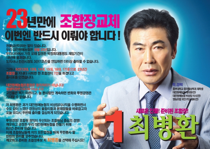 ÃÖº´È¯ Á¶ÇÕÀå Èĺ¸ ¼±°ÅÈ«º¸¹° (´ëÀü¿ø¿¹³ó¾÷Çùµ¿Á¶ÇÕ)